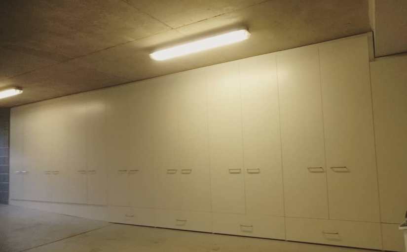 Getting to flex the creativity muscle a little here and meet the clients brief of maximum storage for an uneven height garage wall. Another thrilled client!