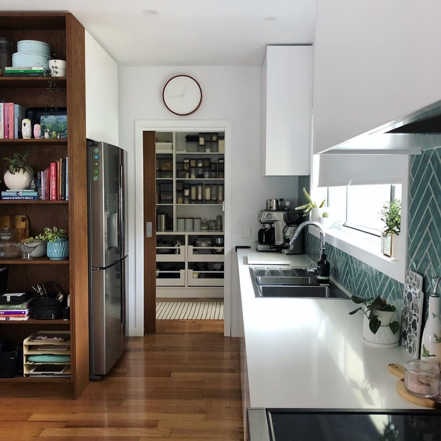 A completely custom residential kitchen that we manufactured and installed. It included an incorporated custom made solid Tasmanian Blackwood butchers block into island bench.